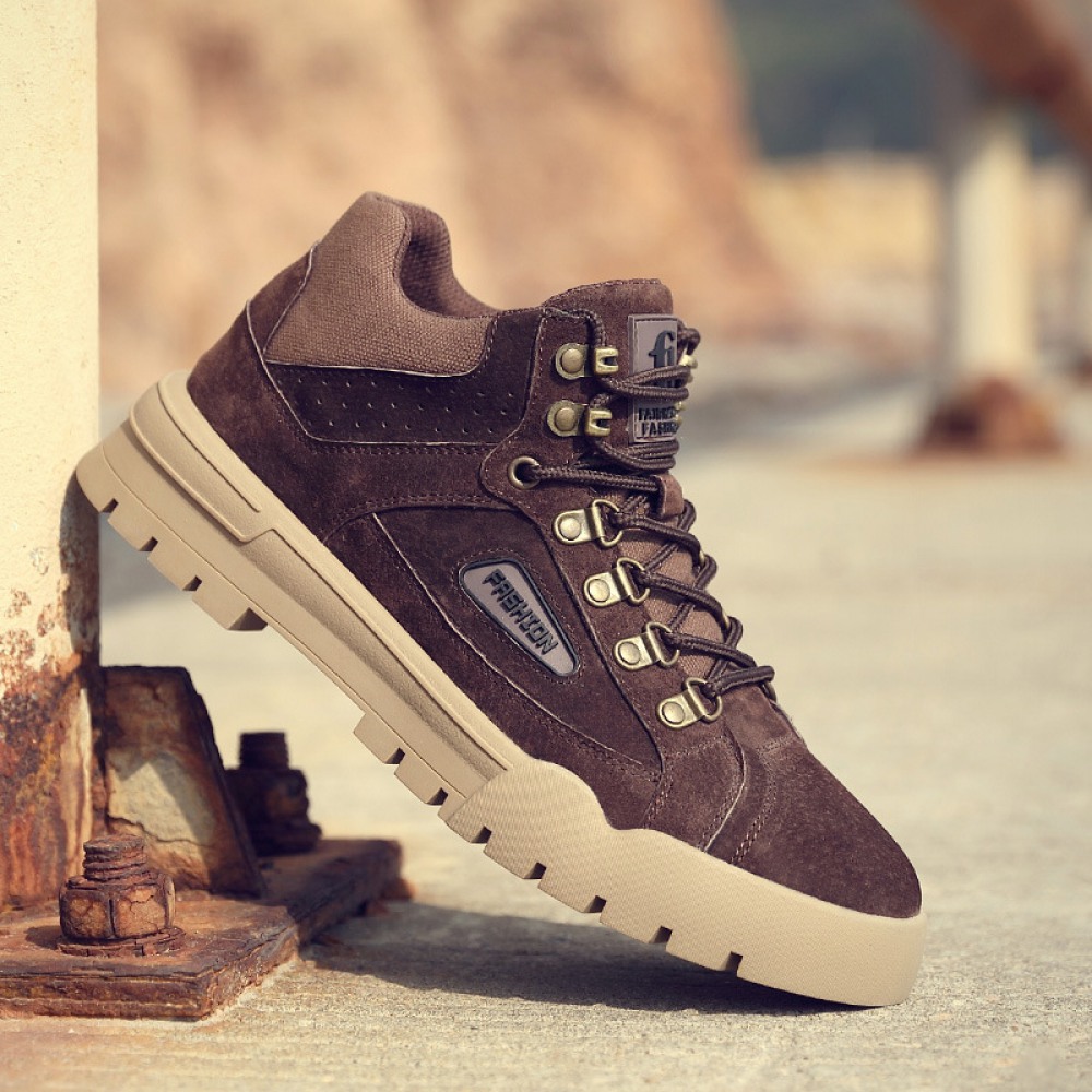 Men's Autumn and Winter New High-Top Boots Trend Tooling Military Boots British Martin Boots Men's Trendy Mid-Top