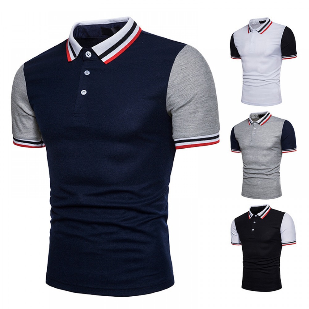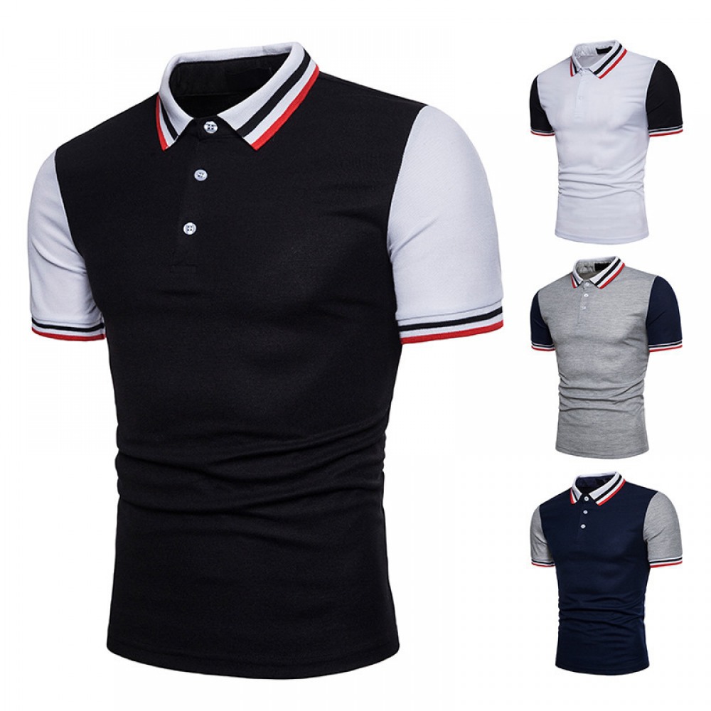 Summer Color Matching Business Casual Shirt Lapel T-Shirt Men's Shirt Collar Short-Sleeved Shirt Work Bottoming Shirt