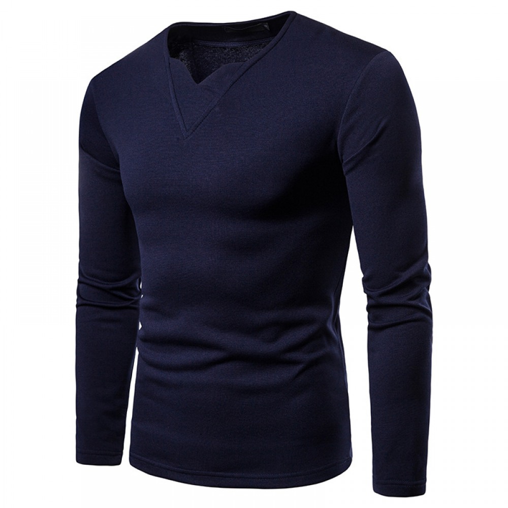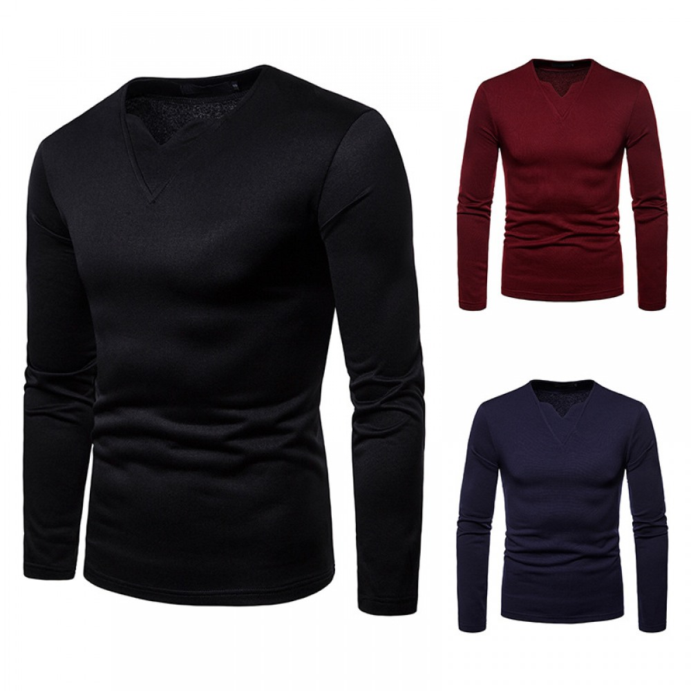 Men's Plus Size Plus Velvet Warm V-Neck Long-Sleeved T-Shirt Base Shirt
