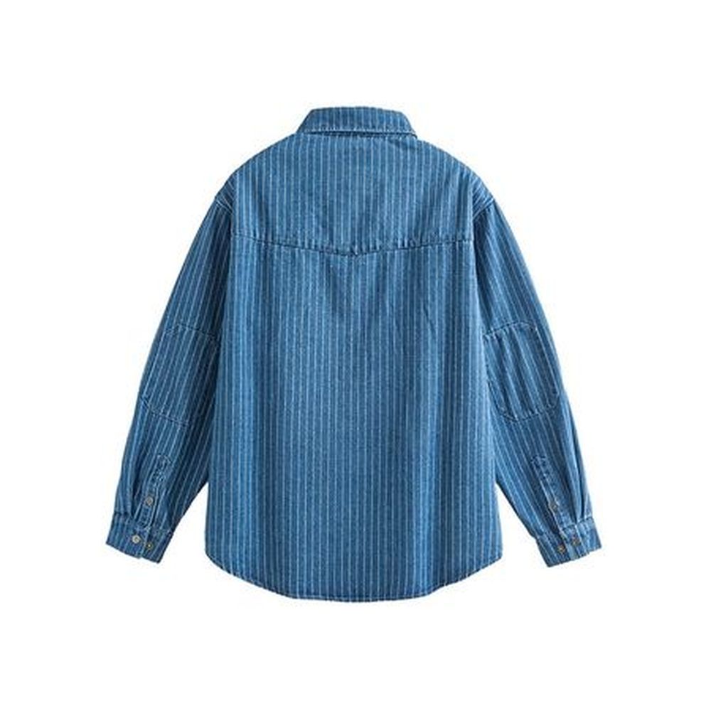 Men's Retro Striped Denim Shirt Washed Shirt Jacket