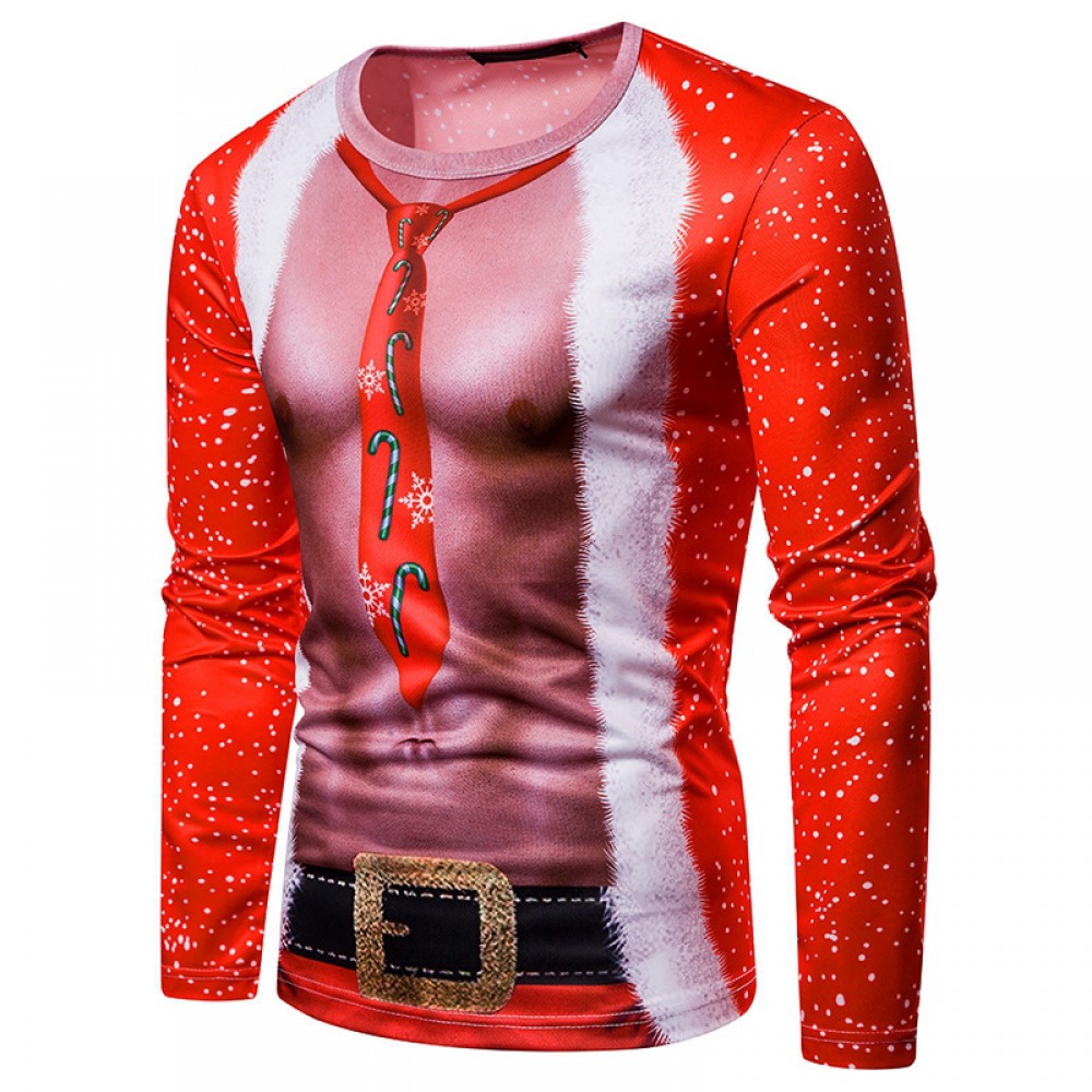 New 3D Personality Printing Fashion Men's Christmas Long-Sleeved T-Shirt