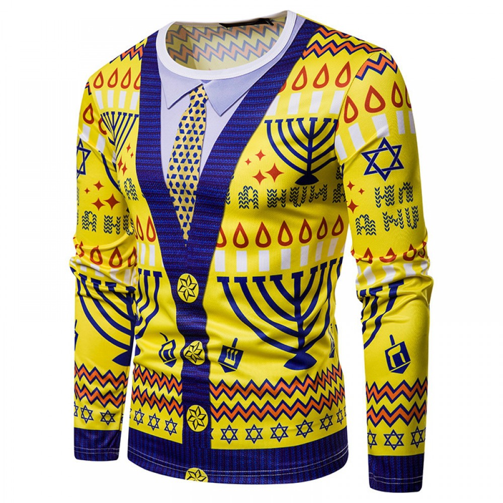 New 3D Personality Printing Fashion Men's Christmas Long-Sleeved T-Shirt