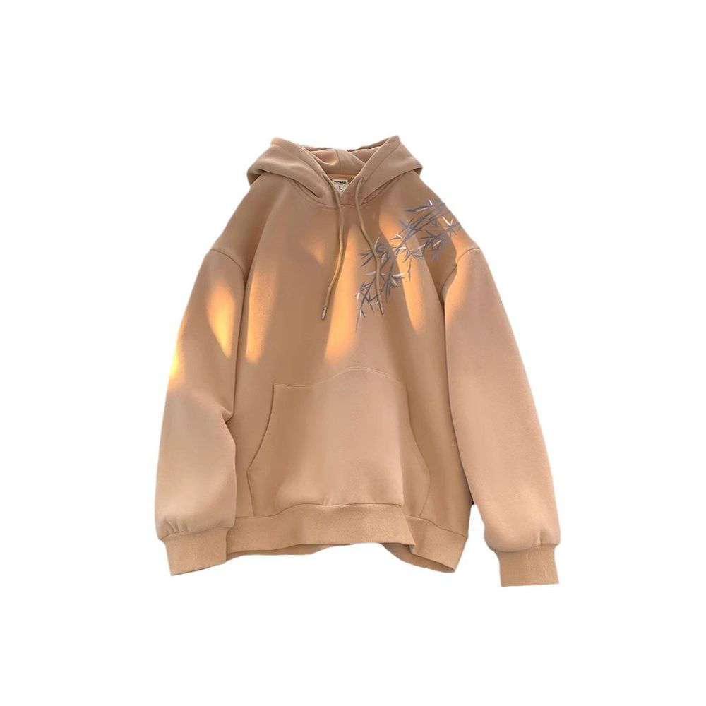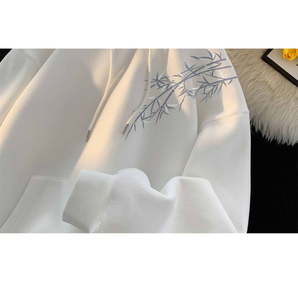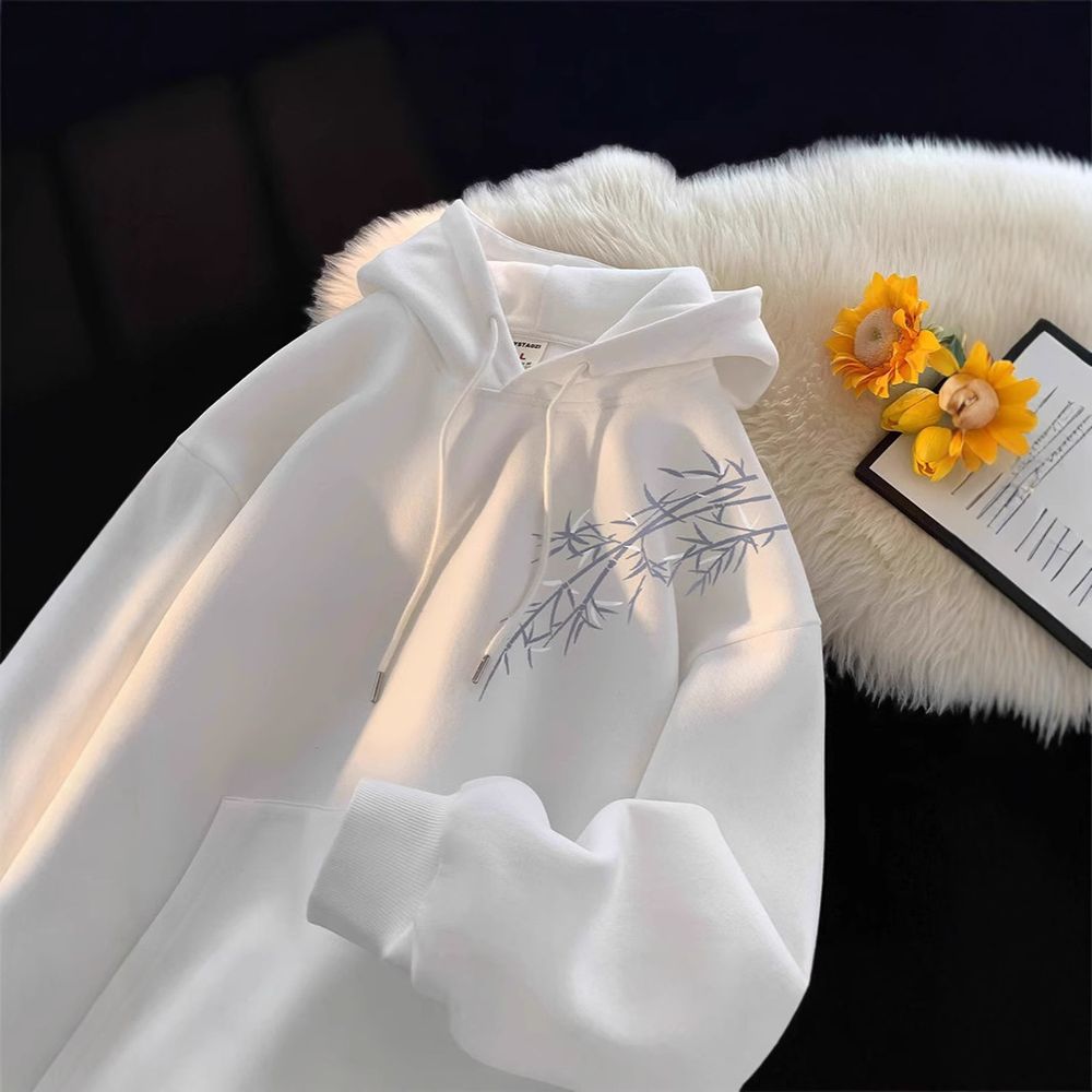 New Chinese Style Printed Hooded Sweatshirt for Men With Velvet