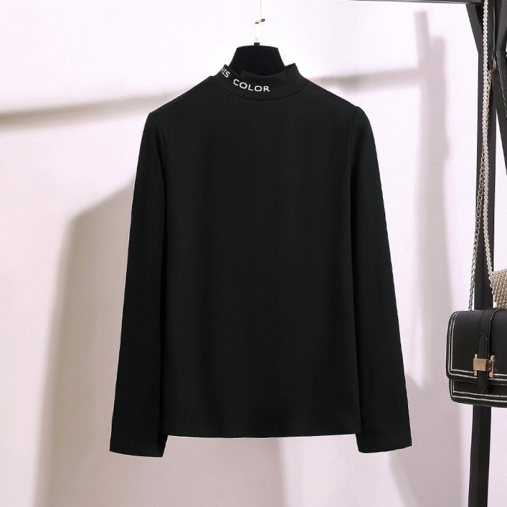 New Fat Long-Sleeved All-Match T-Shirt Loose Round Neck Printing Irregular Half High Collar Bottoming Shirt Women