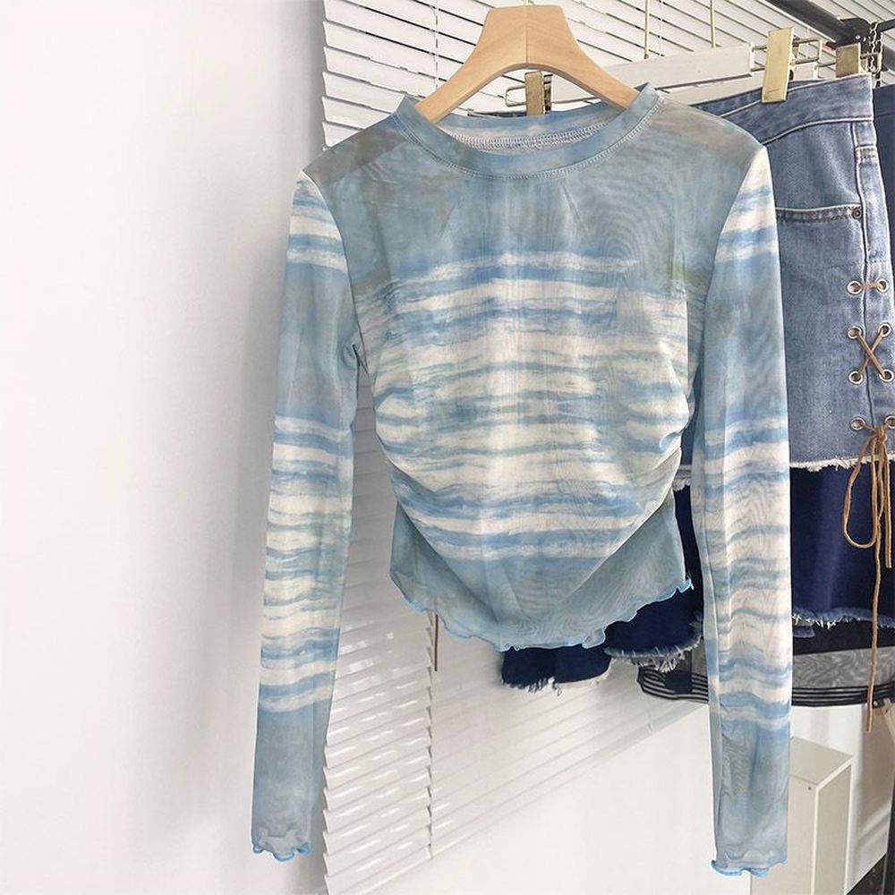 Slim-Fit Ruffled Sunscreen Short Top Women's Long-Sleeved T-Shirt