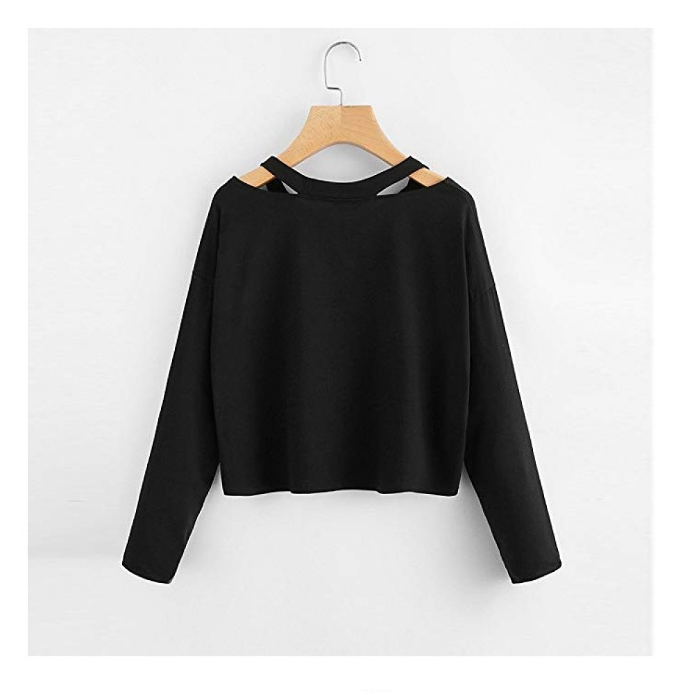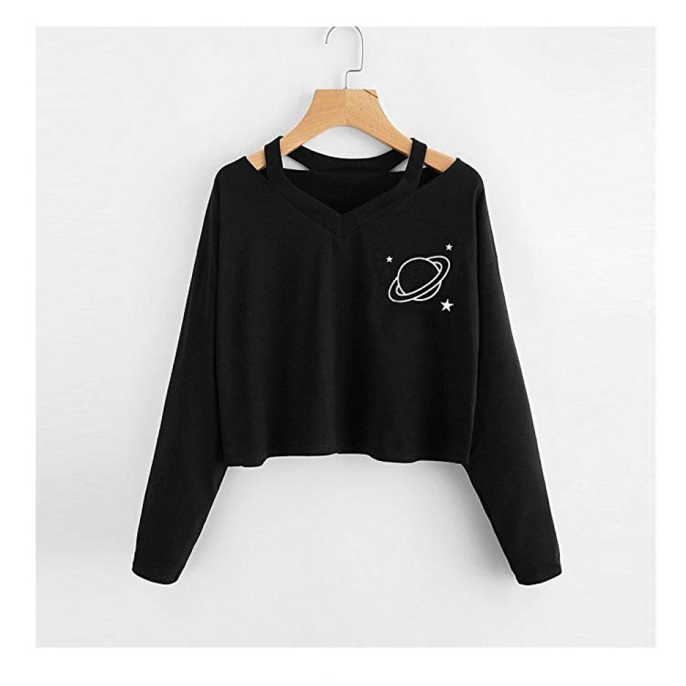 Hot Style V-Neck Hollow Planet Print Short Long-Sleeved T-Shirt