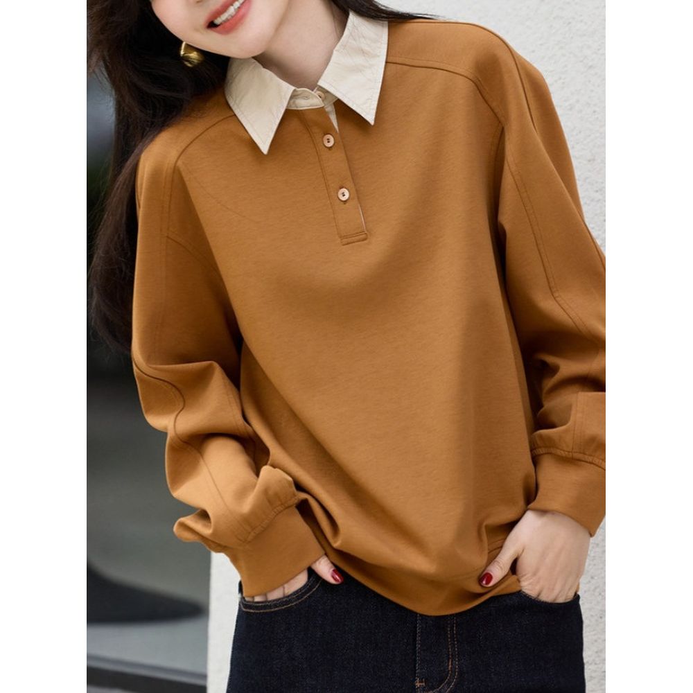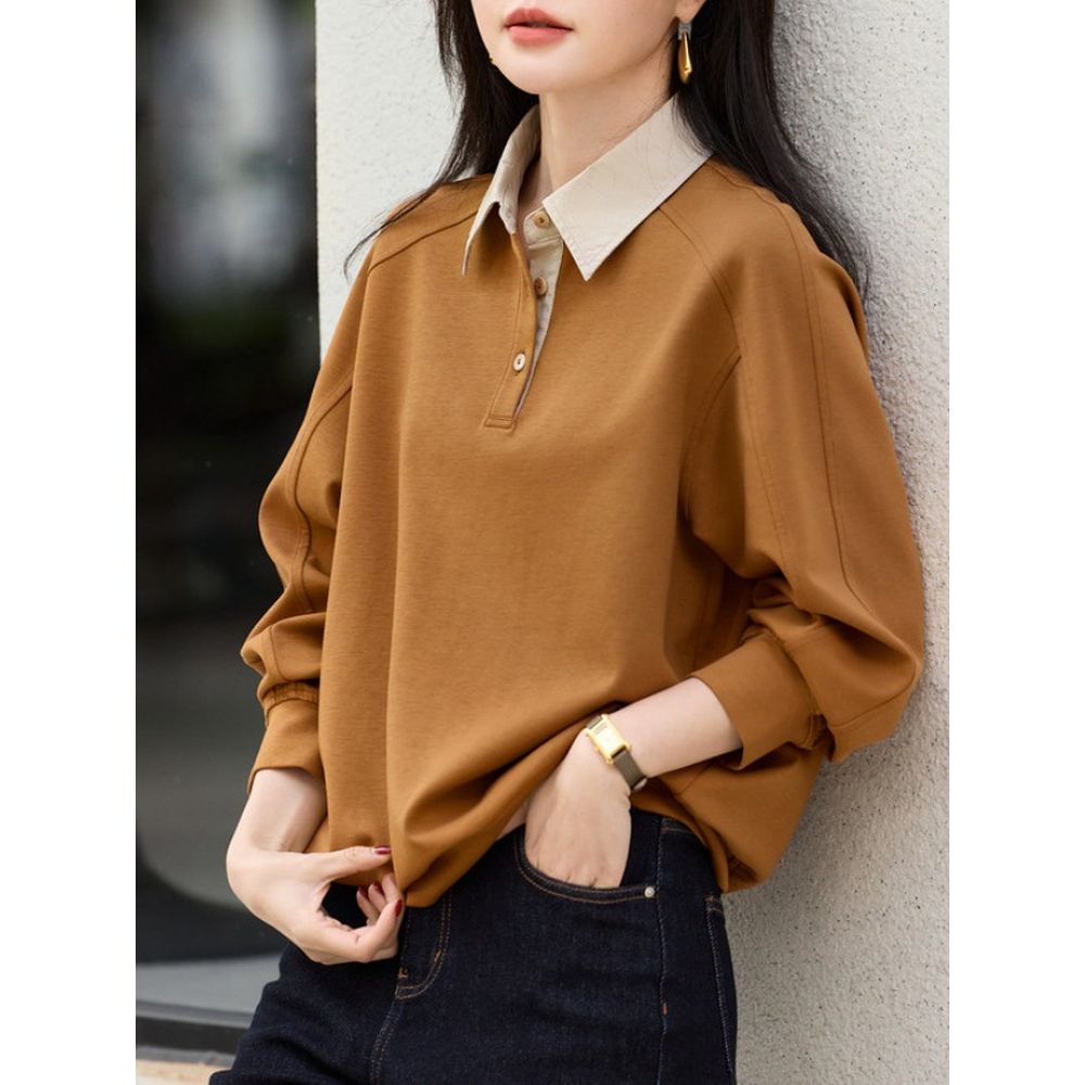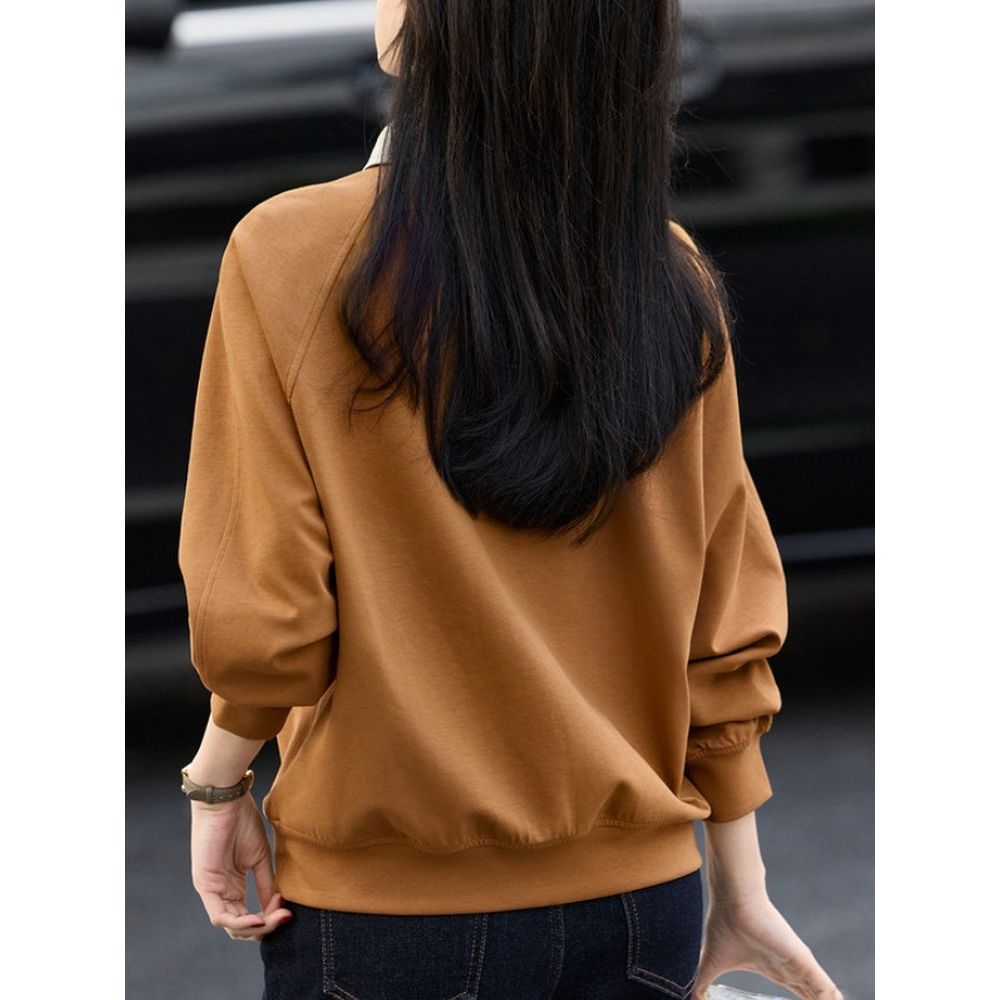 Lapel Patchwork Sweatshirt Casual Tops Women Hoodie