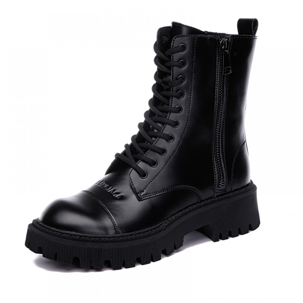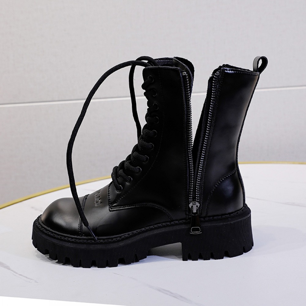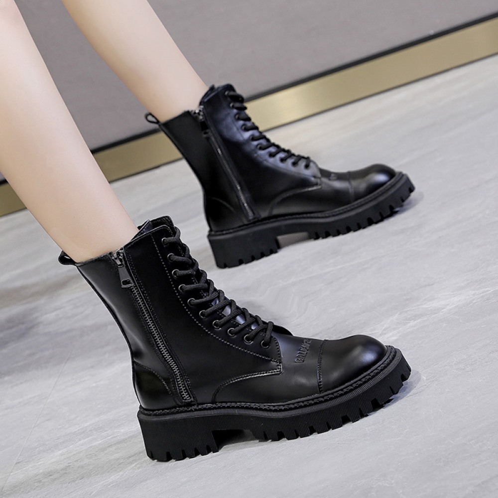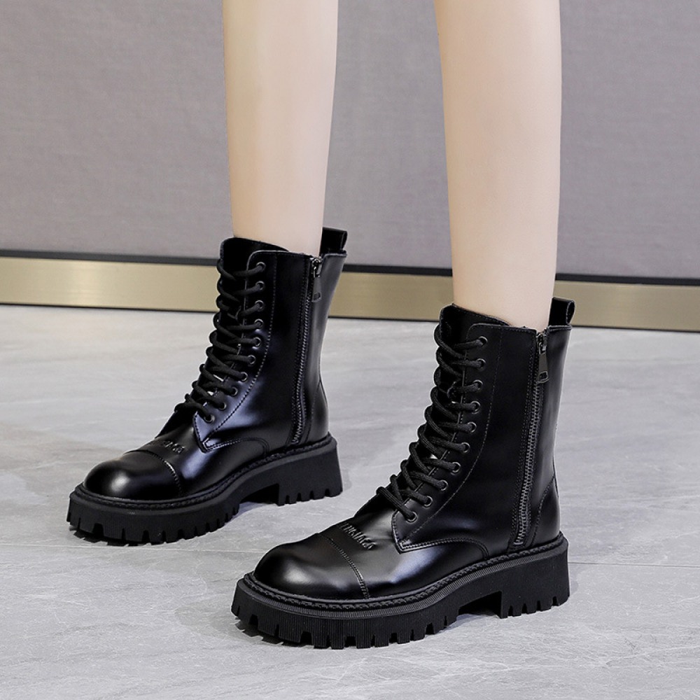 Martin Boots Women's Autumn New Thick-Soled Leather Boots Round Toe Thin Boots Mid-Tube