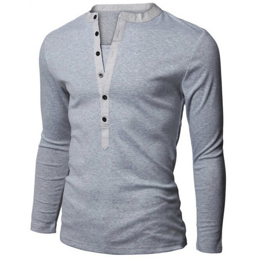 Men's 6 Button Slim Long Sleeve T-Shirts Autumn and Winter New Hot Sale Men's T-Shirts