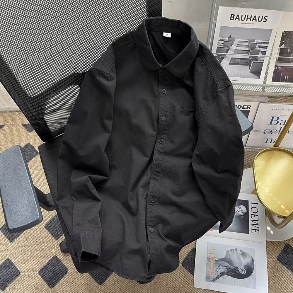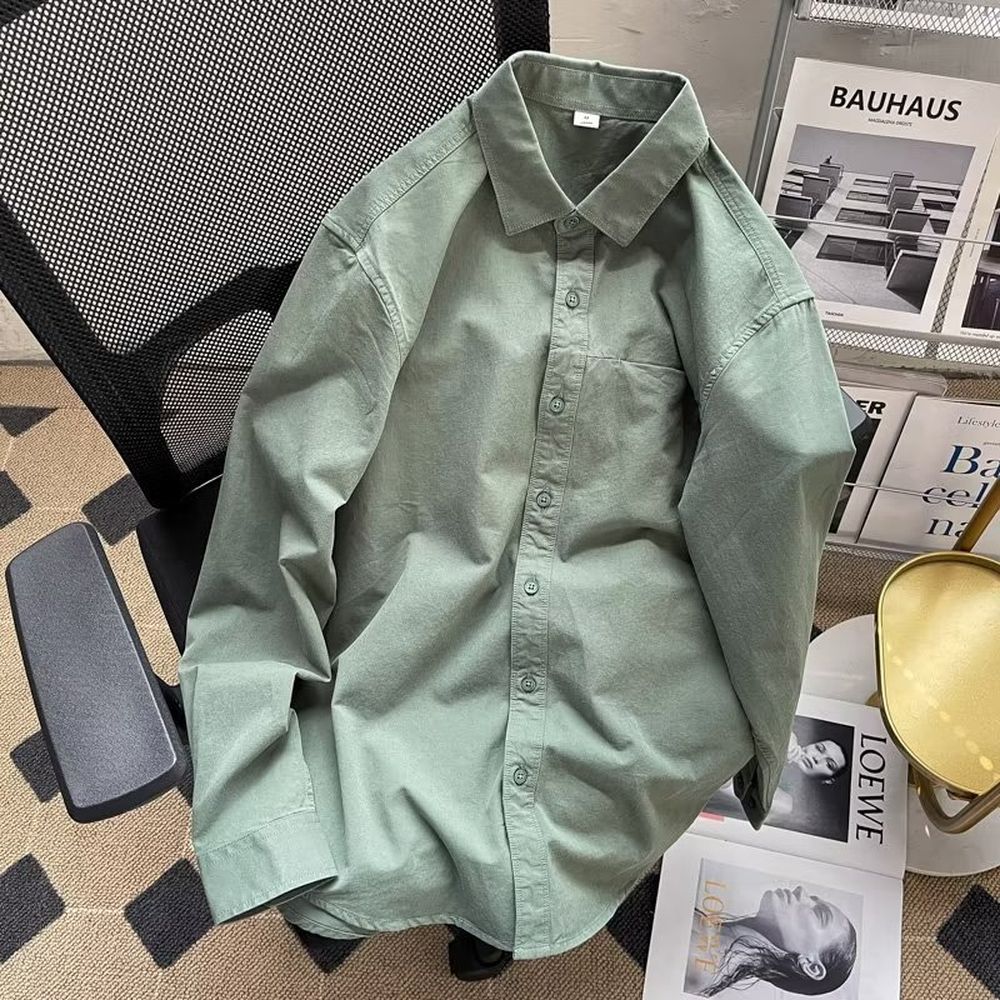 Men's Long Sleeve Shirt Solid Color Casual Lapel Shirt