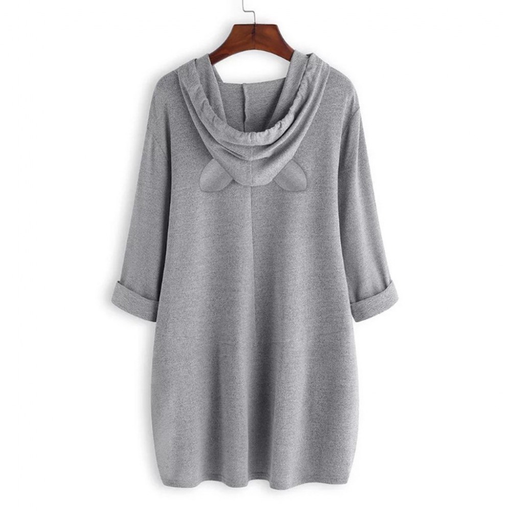 Mid-Sleeve Hooded Loose T-Shirt Large Size Ladies Printed Irregular Top