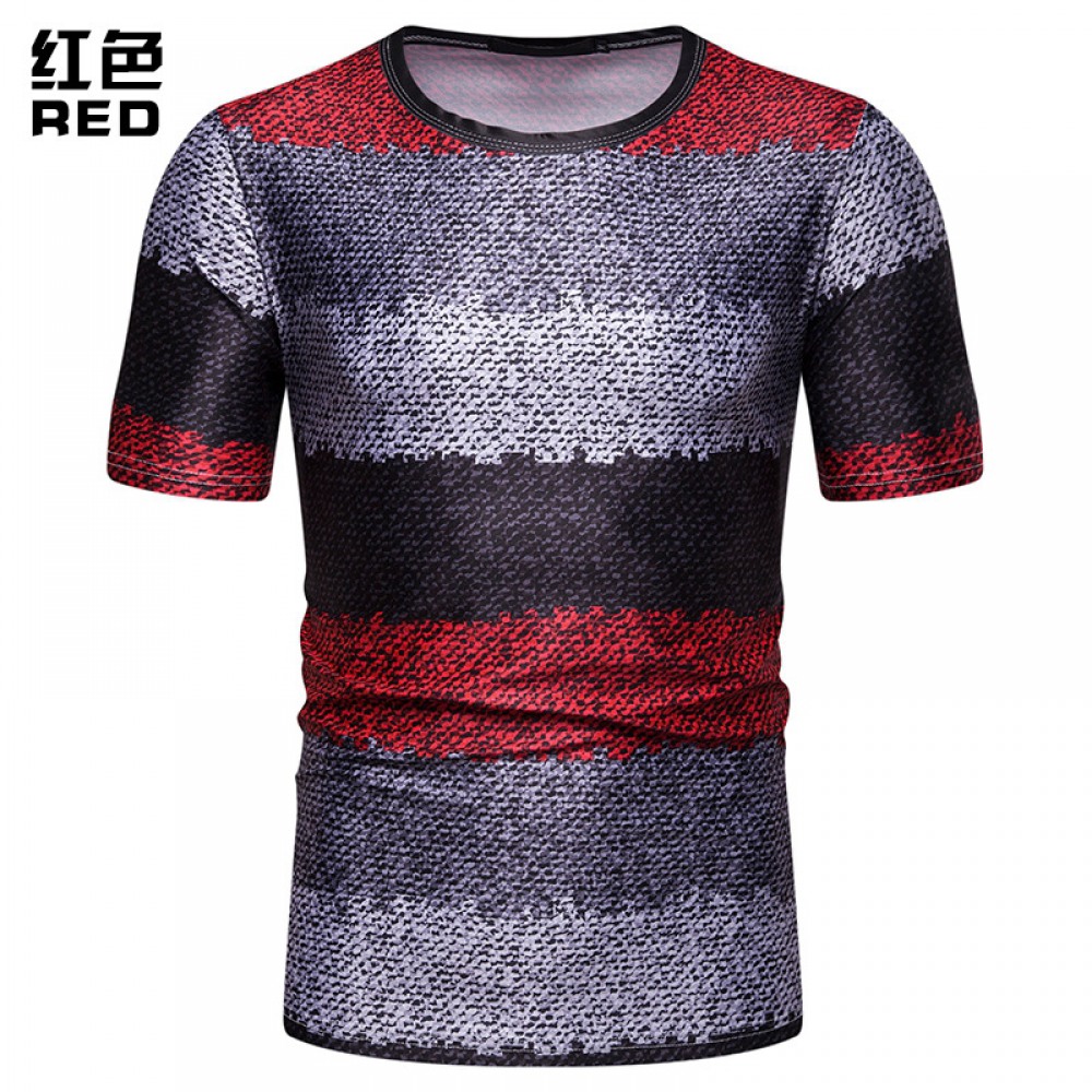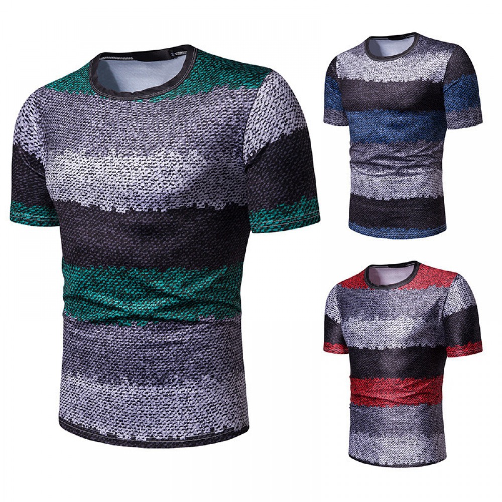 New Summer Men's Short-Sleeved T-Shirt Mens Contrast Striped Slim-Fit Casual T-Shirt