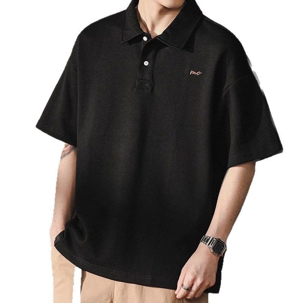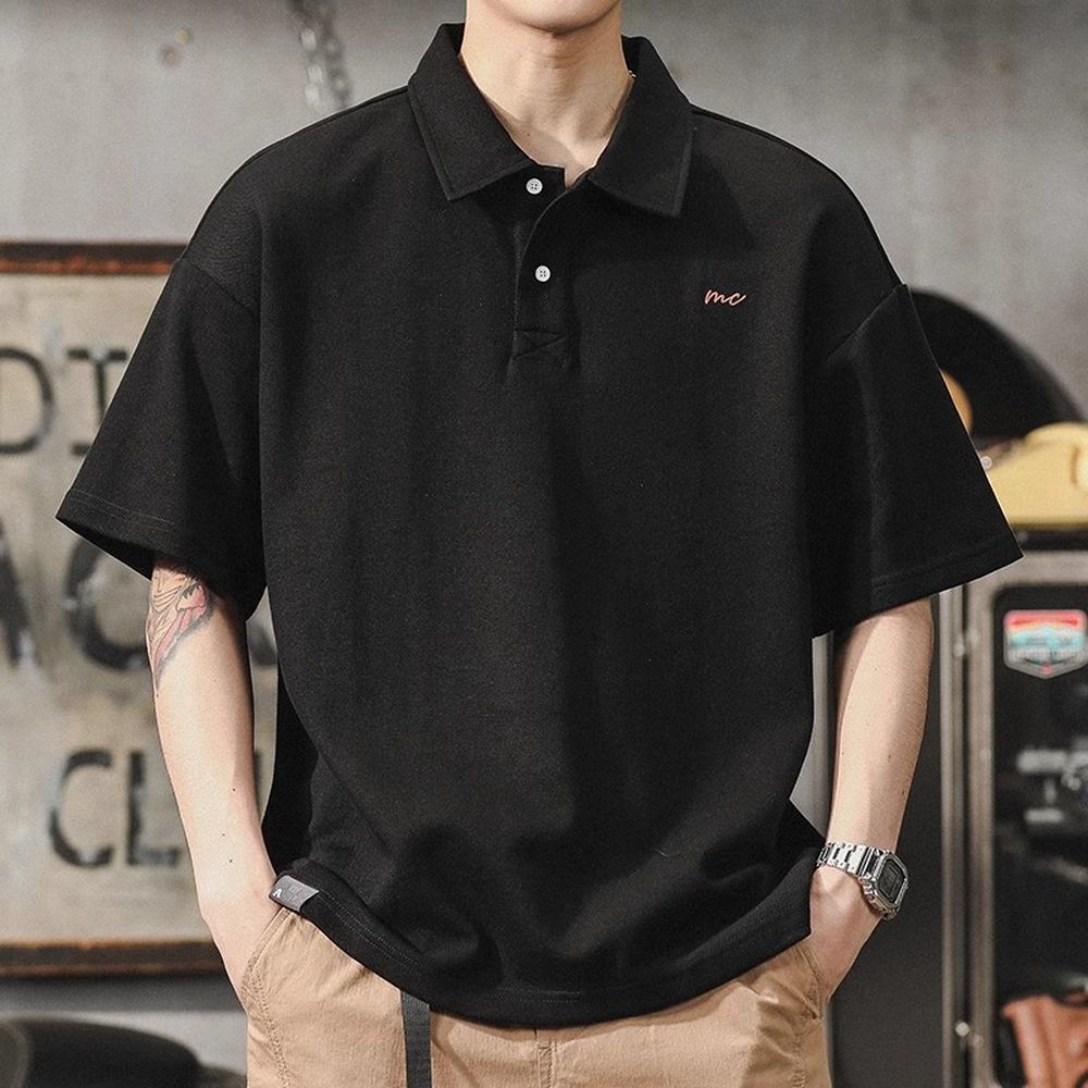Retro Polo Shirt Men's Summer Simple Style Loose Large Size Shirt